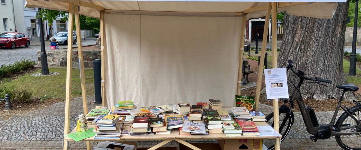 Am Wochenende steht bei schönem Wetter ein Bücherstand von 10:00 Uhr bis 18:00 Uhr auf dem Markt in Teupitz. Die Bücher wurden vom Verein „TeupitzGehtAuf“ im Antiquariat Minx in Wünsdorf ausgesucht. Buch- und Themenwünsche gerne unter info@teupitzgehtauf.de Wir bedanken uns bei Herrn Dr. Minx Antiquariat Wünsdorf für die Bücherspenden. Wir können uns die Bücherkisten jederzeit frei zusammenstellen. Somit verändert sich auch das Angebot.