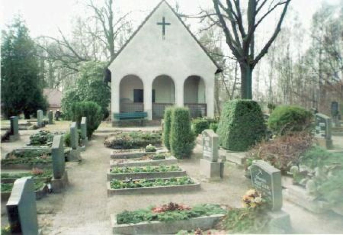 Im Jahre 1828 wurde der Kirchhof an der Heilig-Geist-Kirche für Beerdigungen geschlossen und hierher zum Geesenberg verlegt. 1908 erwarb die damalige ‚Landesirrenanstalt’ für die Errichtung einer Kapelle den alten Dorfkirchhof von der Kir-chengemeinde. Das unmittelbar am Anstaltsgelände angren-zende Terrain war mit hohen Akazien und Fliedersträuchern besetzt. Auf diesem Flecken wurde die Leichenhalle errichtet, damals bestehend aus Einsegnungshalle, Sektionsraum und Leichenkammer.