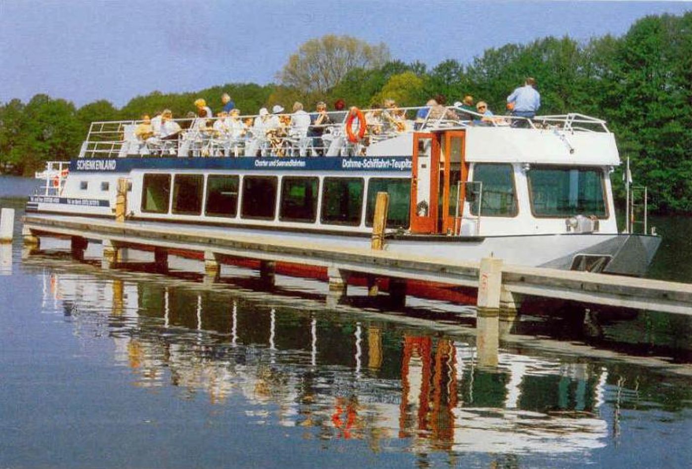 Bereits seit 1993 dient das moderne Flaggschiff des Unternehmens, die ‚Schenkenland’ (150Pers.), dem Linien- und Charterbetrieb auf den Teupitzer Gewässern. Ihr Name folgte der Bezeichnung ‚Schenkenländchen’, welche das hiesige Gebiet seit Jahrhunderten trägt. 1993 gebaut auf der Placke-Werft in Aken, bietet die ‚Schenkenland’ 65 Personen Platz im Salon und 85 Personen auf dem Oberdeck. Zusätzlich fuhr von 1995-1999 das Motorschiff (MS) ‚Liberty’ (75 Pers.) unter der Schiffsführerin Ilse Kaubisch.