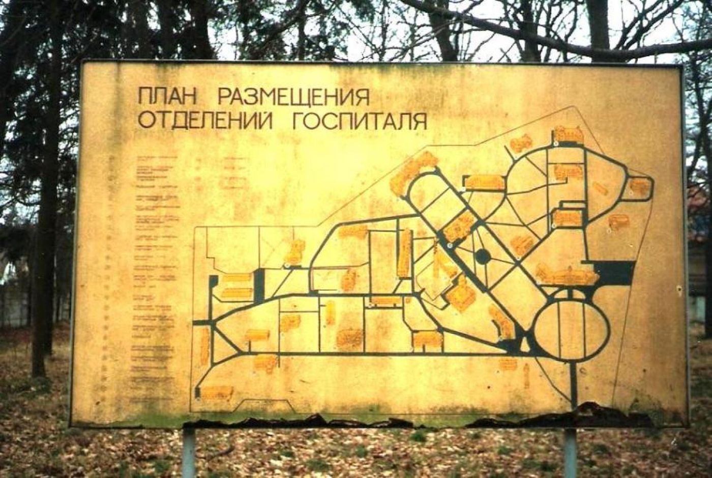 Es gliederte sich in einen Teil für Soldaten, psychisch Kranke, Alkoholiker und einen Teil für Offiziere. Die Stationen: Chirurgie, Physiotherapie, Inneres, HNO, Zahnarzt, Frauen, Entbindung, Sanatorium.