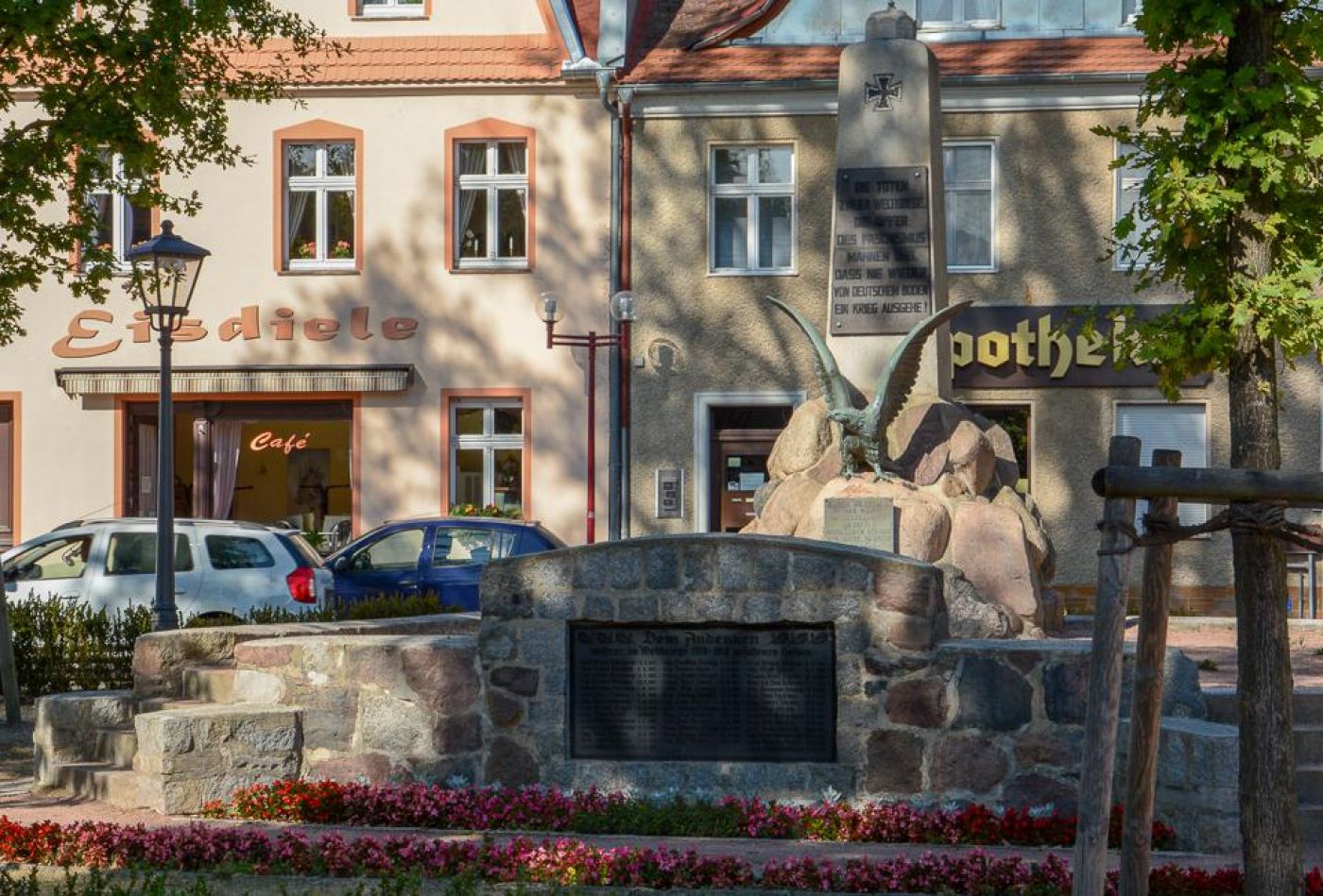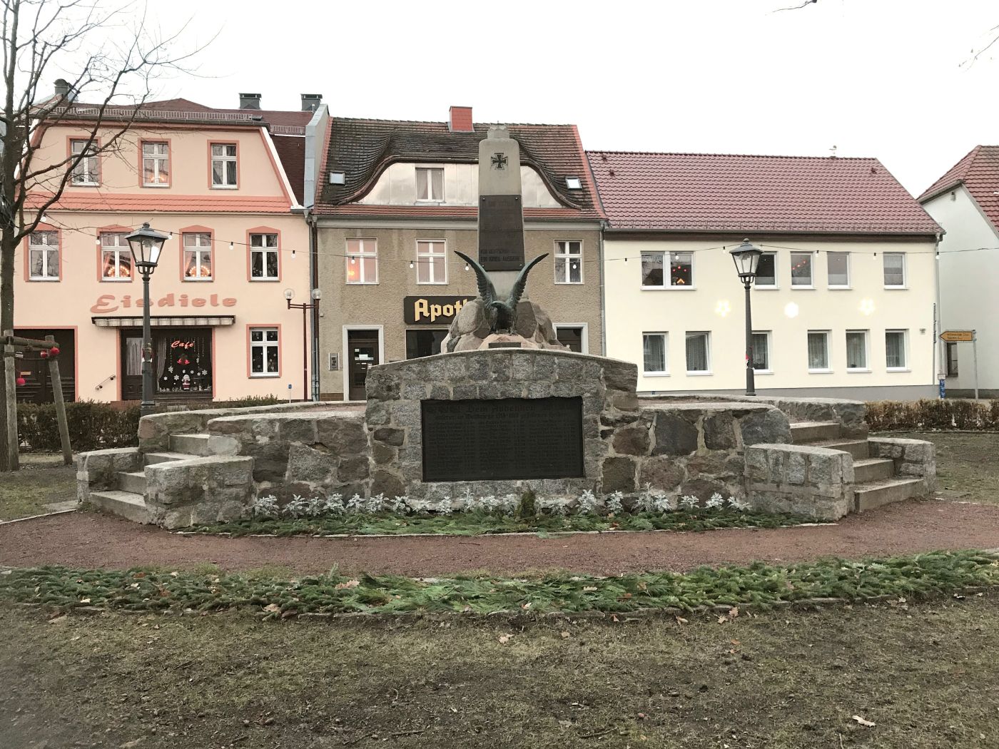Zum Weltfriedenstag in der DDR, am 1. September 1966, wurde das Denkmal zu einem Mahnmal gegen Krieg und Faschismus umgestaltet. Das Eiserne Kreuz wurde durch eine neue Tafel verdeckt, die eine Friedenstaube zeigte. Es wurde eine Tafel aus Granit mit der Inschrift „Die Toten zweier Weltkriege, die Opfer des Faschismus mahnen uns, dass nie wieder von deutschem Boden ein Kriege ausgehe“ angebracht.
